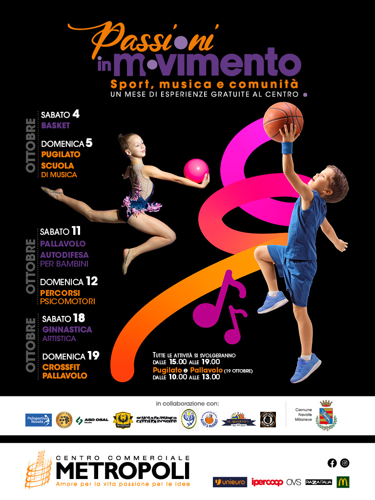 📍 Tutti gli eventi si svolgeranno presso il Centro Commerciale Metropoli – Navate Milanese.